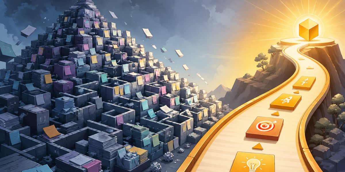 Confundir backlog cheio com capacidade de inovar é um erro estrutural, não de criatividade. Não se trata de ter poucas ideias, trata-se de acreditar que acumulá-las é o mesmo que fazer progresso.